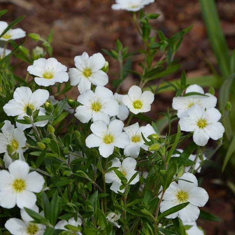 This is a typical perennial alpine with origins in the Alps of Europe. It forms cushions of creeping and spreading grey-green foliage which produce a mass of bright white flowers that cloak the foliage in spring.